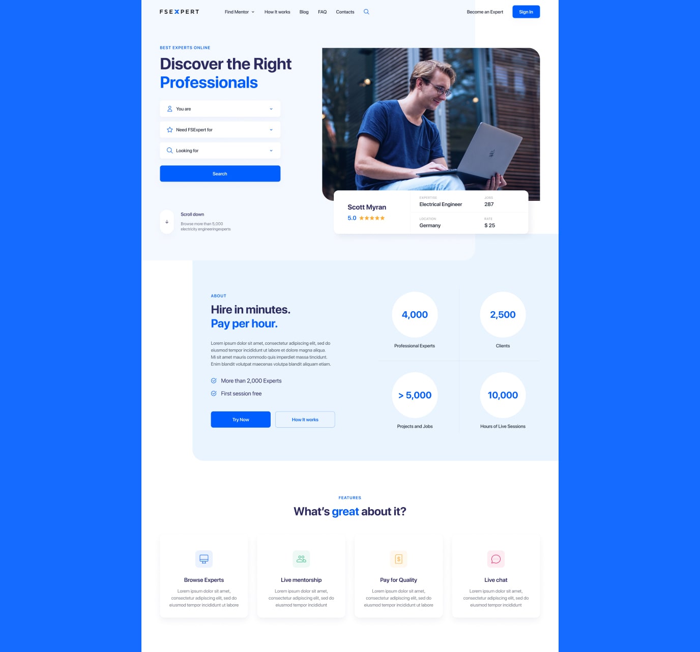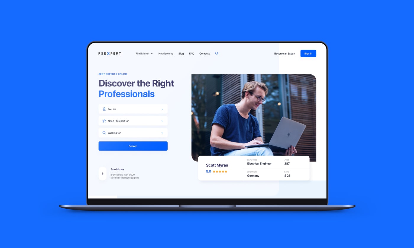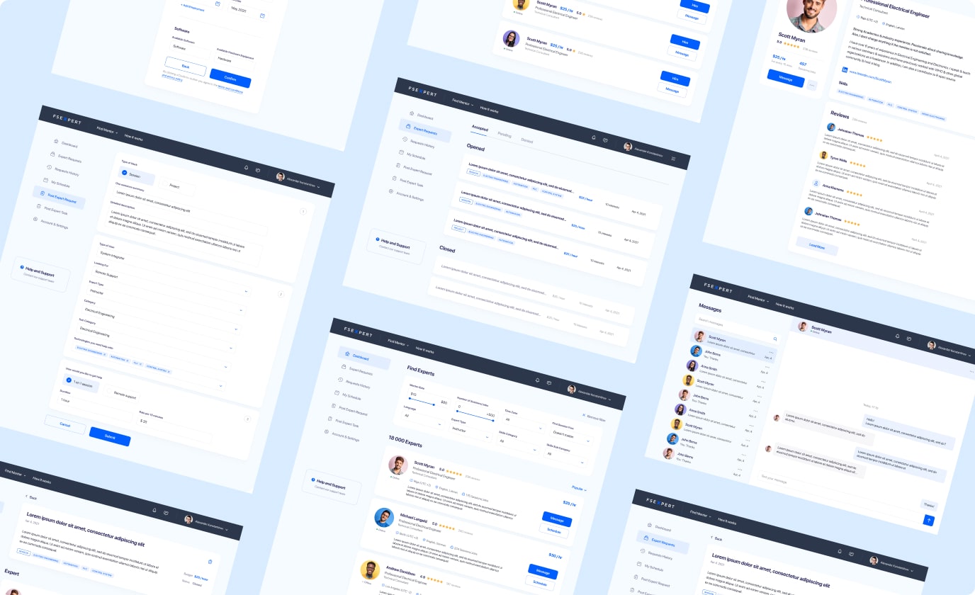 We’ve helped team at FSExpert to design and develop a service for discovering and hiring the best experts online. Clean and solid, minimalistic approach with lots of air and white space was a perfect match for the desired, lightweight aesthetic for this project.